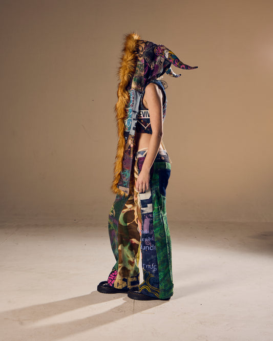 Denim Ox Horn Hood/Hat