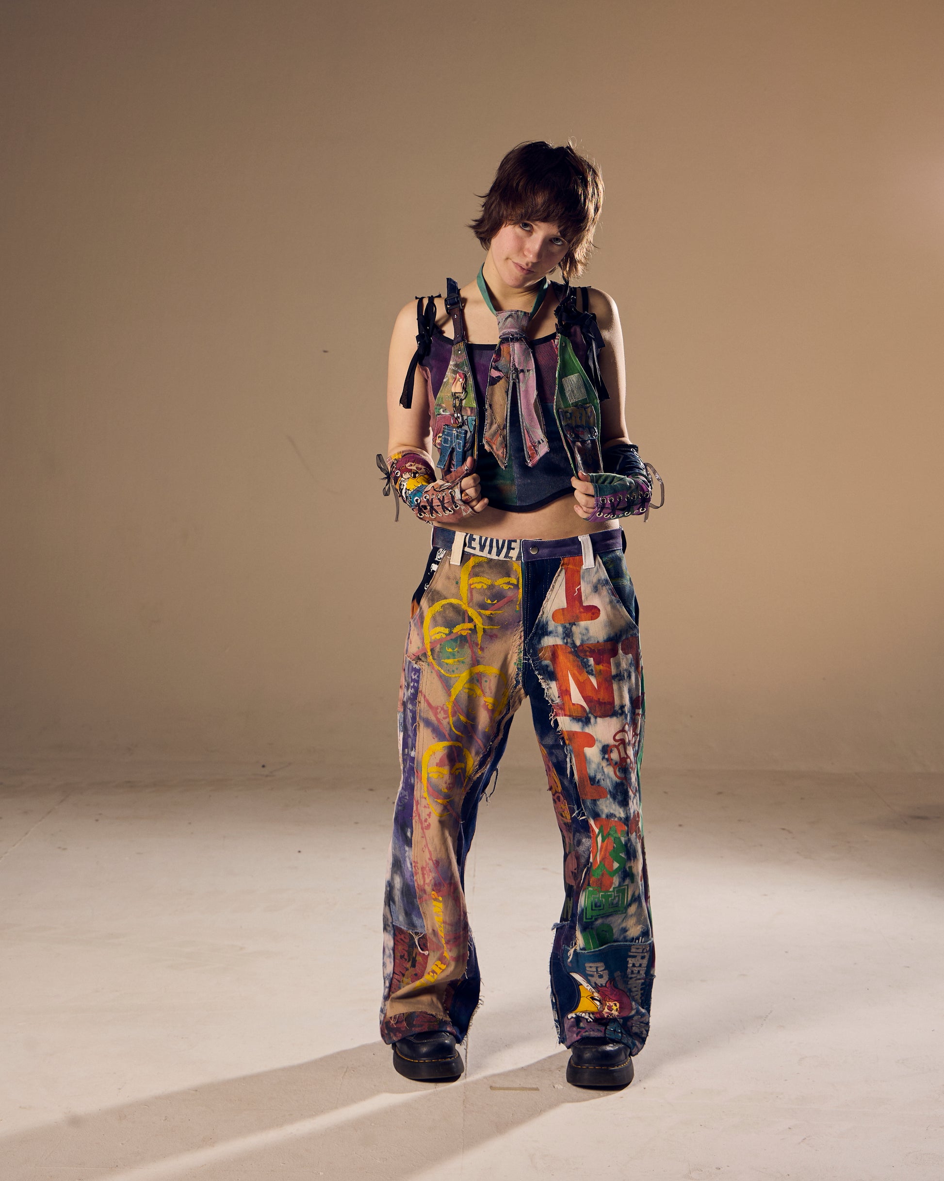Hand dyed, Spray painted, Hand drawn detail, Screen printed.