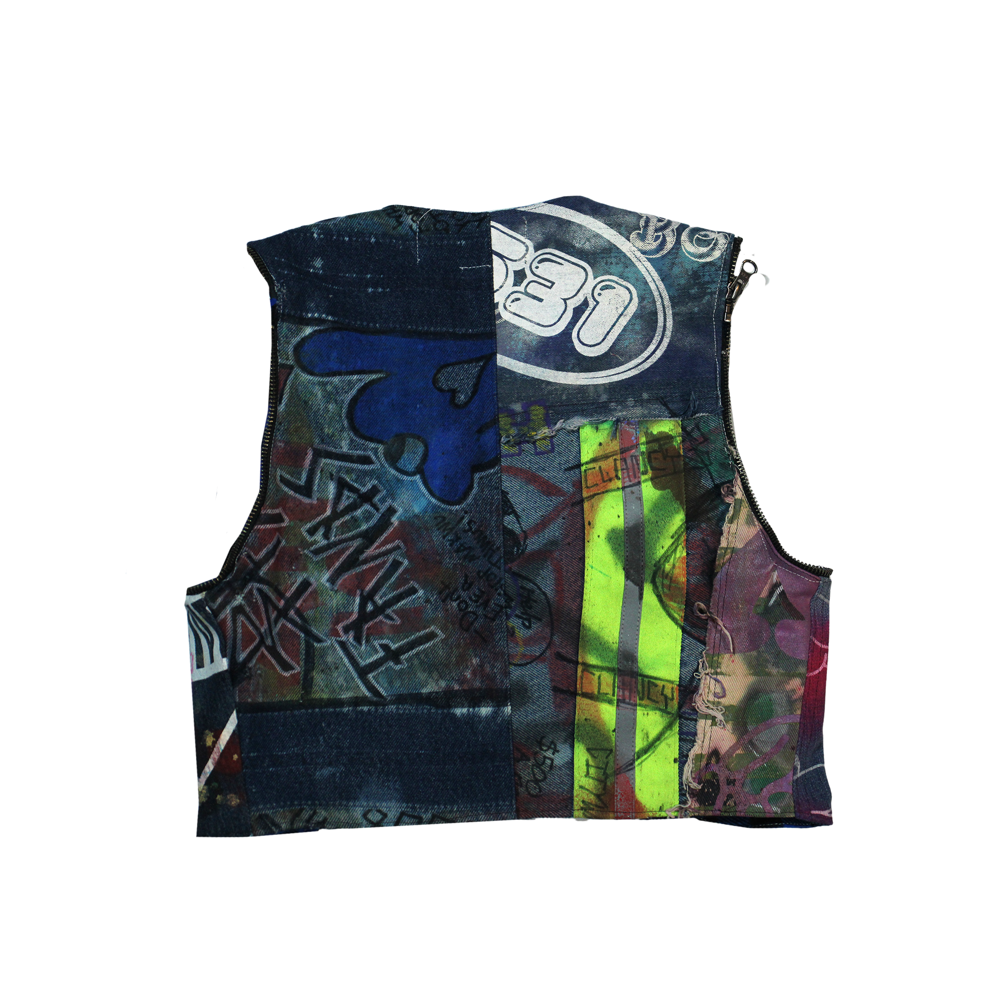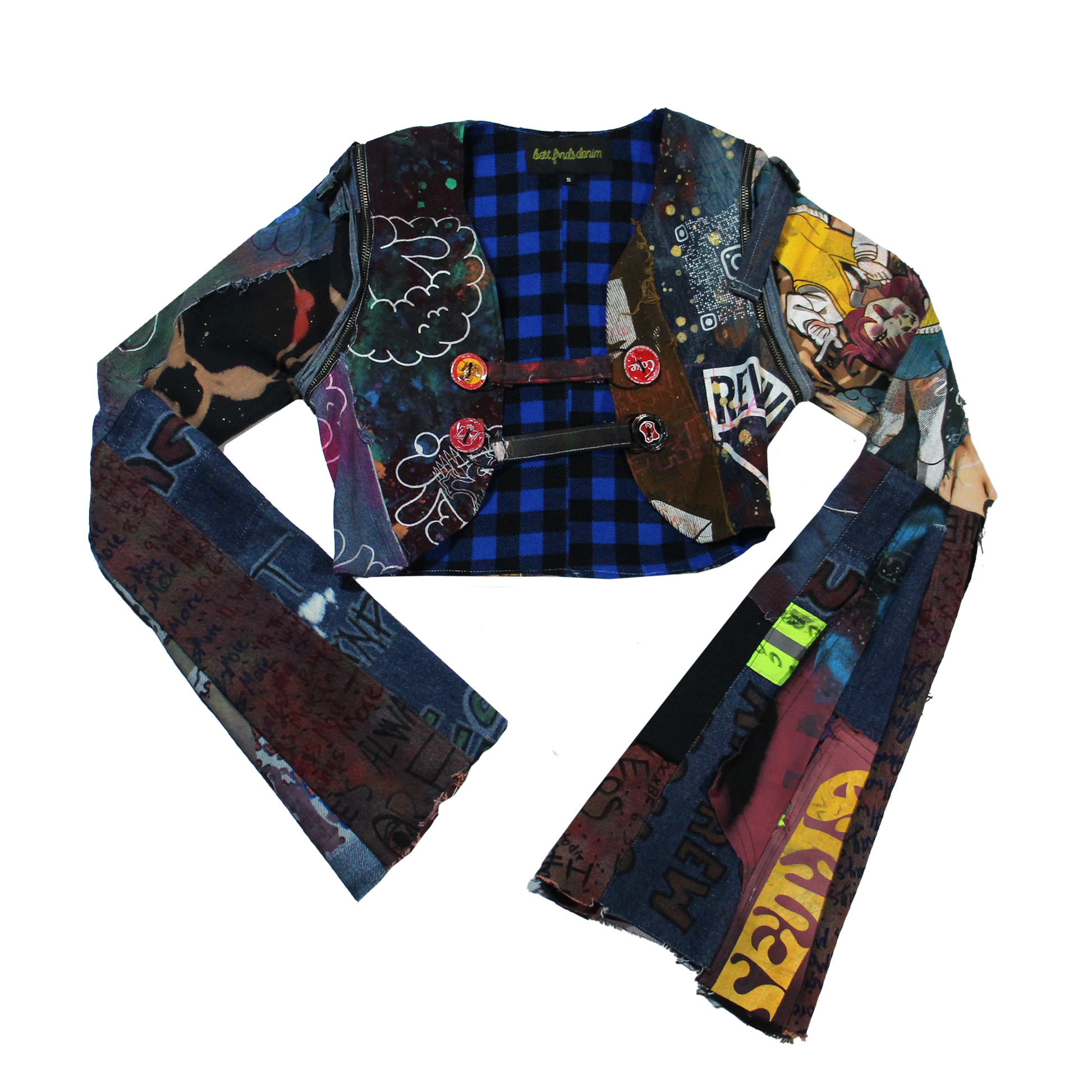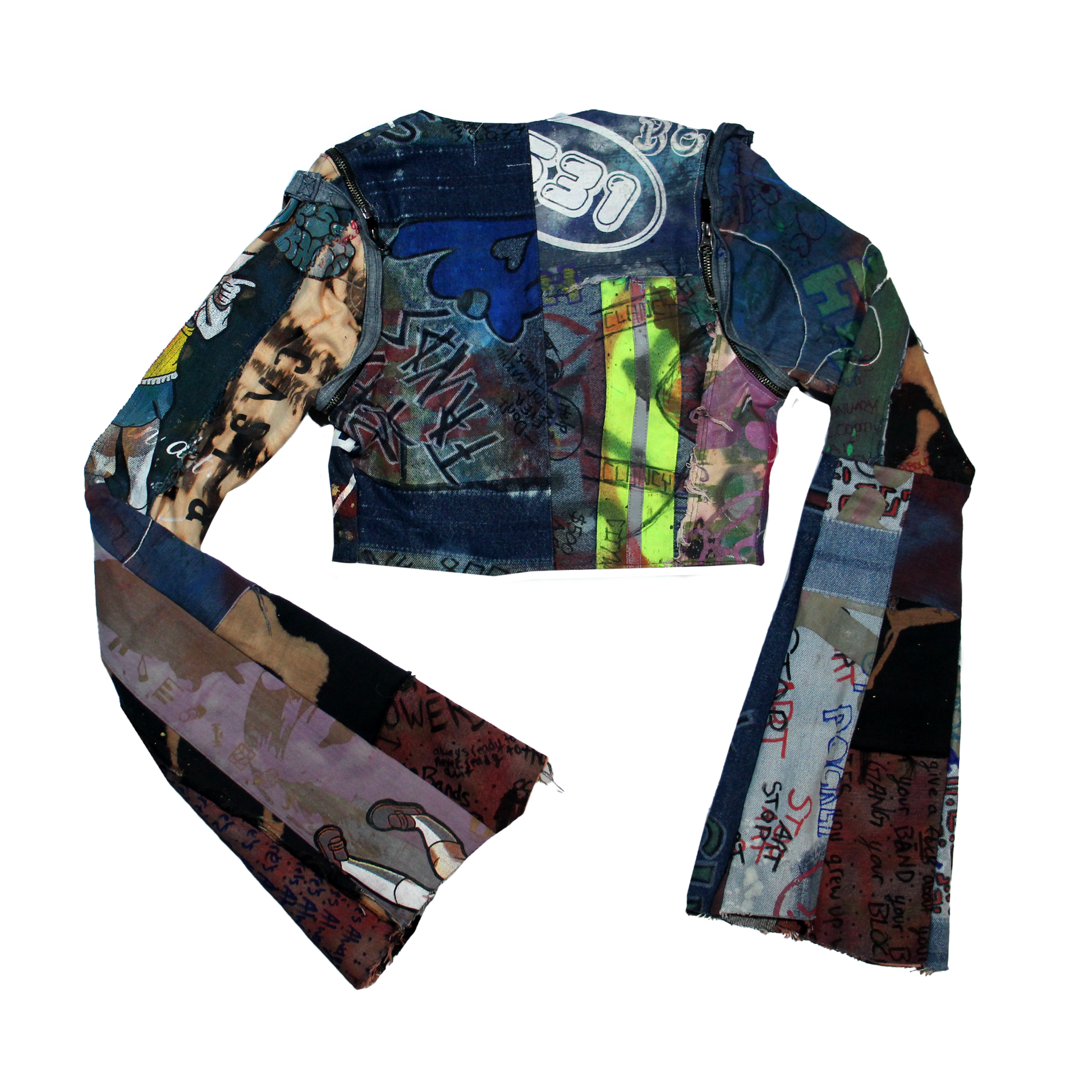 Patchwork Denim Vest With Removable Flare Sleeves