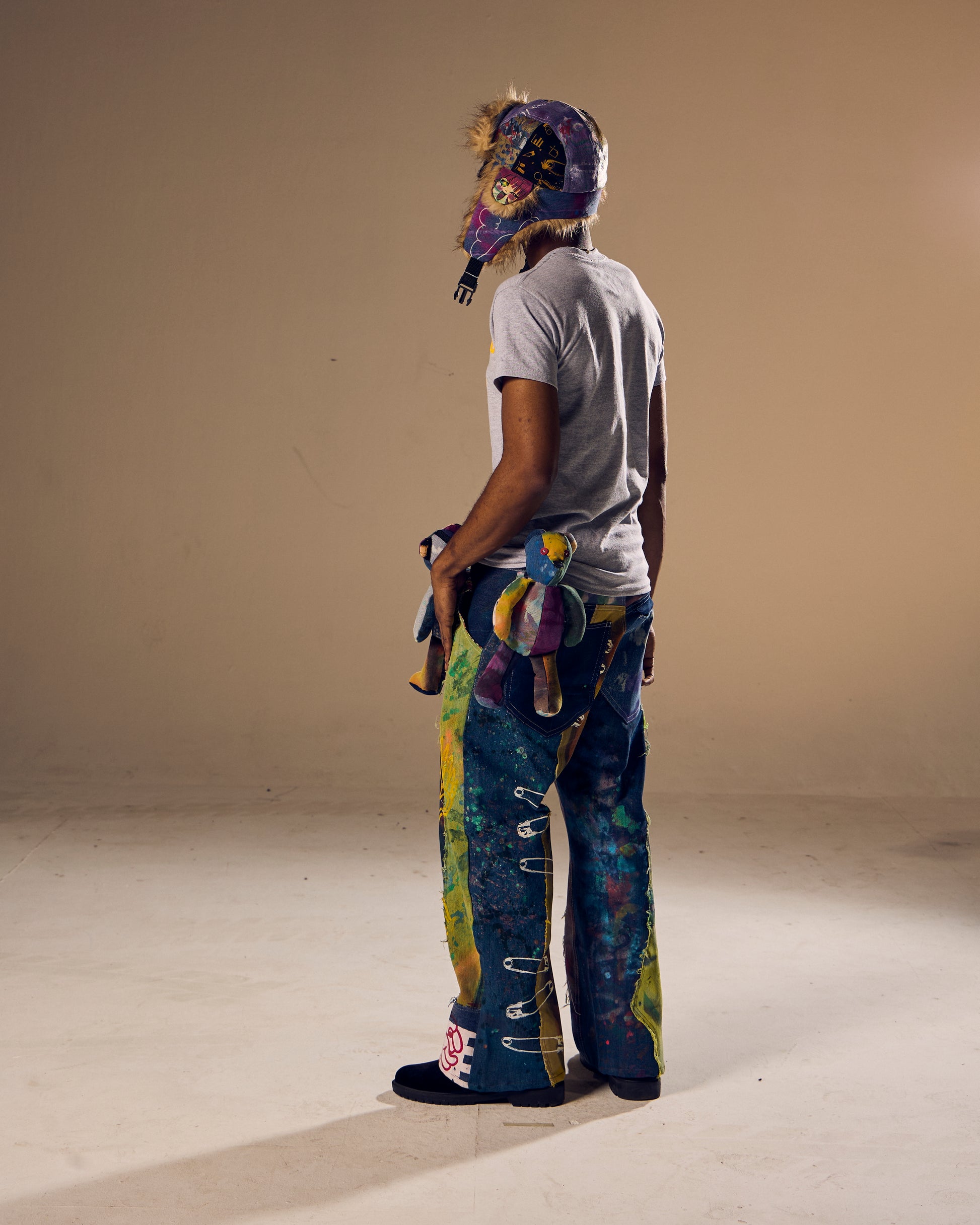 Hand dyed, Spray painted, Hand drawn detail, Screen printed.